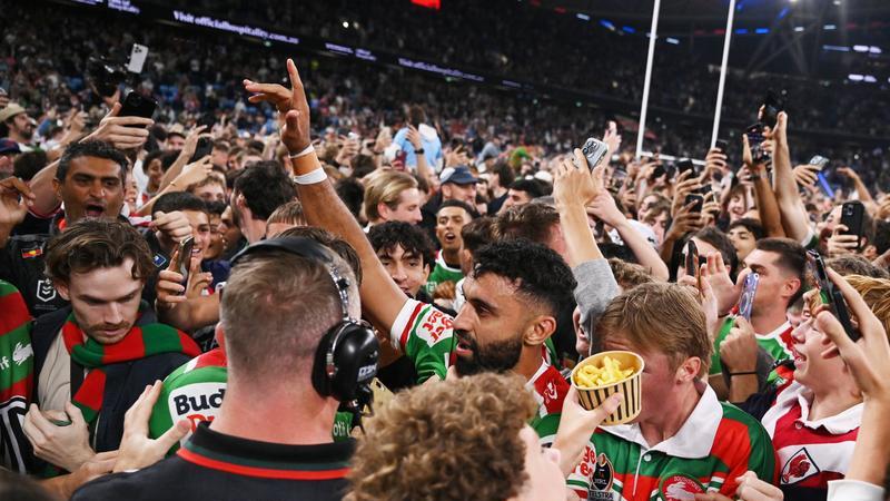 Thousands of supporters rushed onto the field when the Rabbitohs flyer entered rarefied air with his 213th career try in Friday night’s 26-18 loss to the Sydney Roosters.