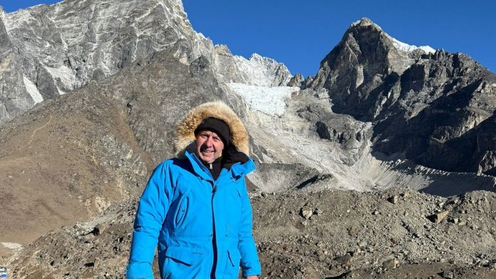 David Sullivan, 62, pictured here, made the journey to the Himalayas to place the lifesaving device on the mountain. (David Sullivan / SWNS)